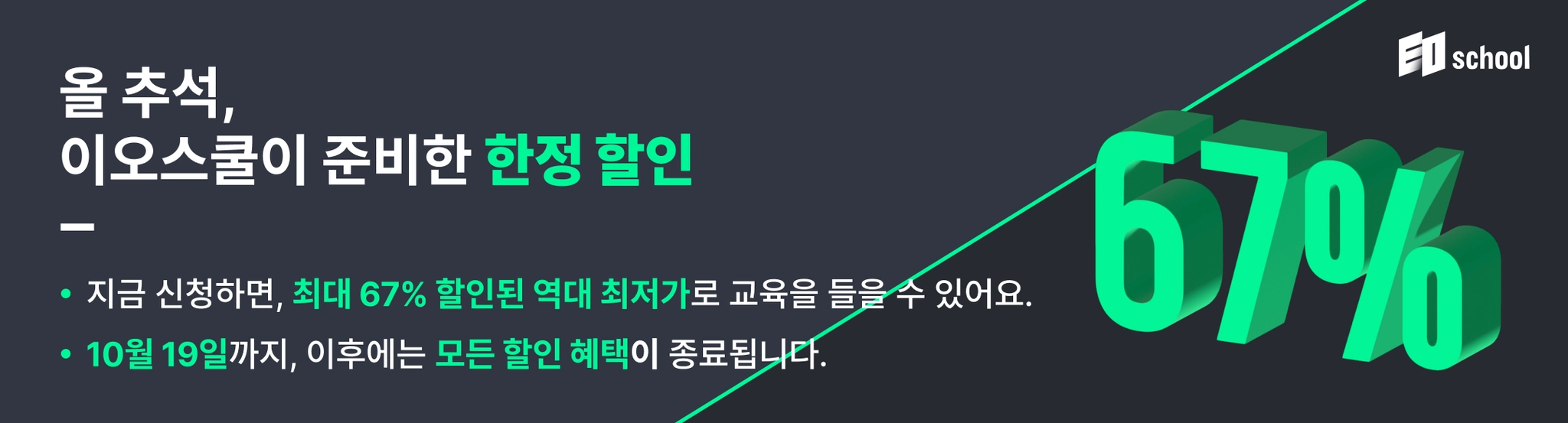 이오스쿨 창업 교육 - 추석 할인 프로모션(~10.19)